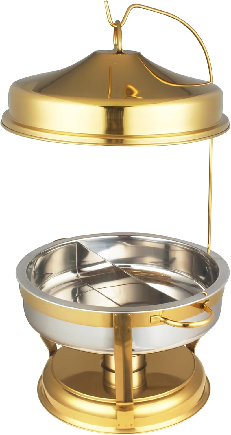 868GHF-2 CHAFING DISH 201, Frame&Fuel Holder 18/0-8L, 2-Division Food Pan, With Golden Trim leg, handles, hook 520x430x765