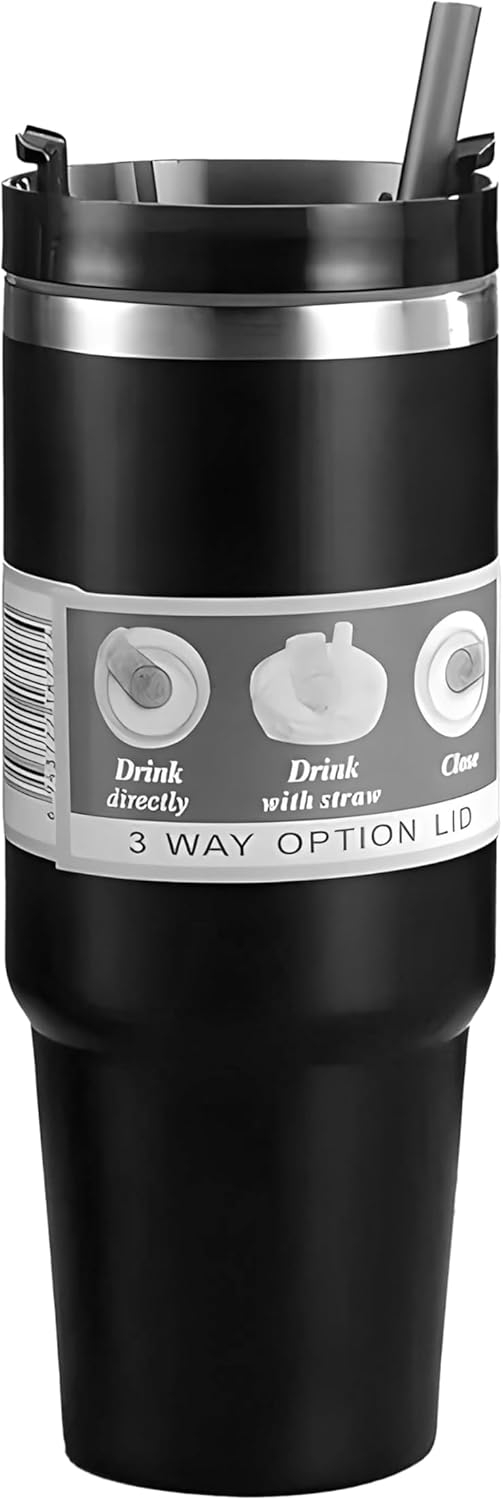 “PREMIUM 304 STAINLESS STEEL CONSTRUCTION: Made from high-quality stainless steel, this vacuum flask ensures rust resistance, durability, and long-lasting use. Its sleek design and sturdy build make it perfect for daily use, travel, or as a reliable companion for outdoor adventures. DOUBLE-WALL INSULATION FOR TEMPERATURE RETENTION: This hot and cold water bottle features advanced double-wall vacuum insulation to keep drinks hot for 6 hours and cold for 12 hours. Perfect for coffee, tea, or chilled beverages, it’s ideal for staying refreshed and energized throughout the day. LEAK-PROOF 3-WAY LID DESIGN: The innovative lid offers three options: sip from the straw, drink directly, or easily add ice cubes through the wide mouth. Designed with anti-leak technology, this flask bottle ensures spill-free use, making it a versatile and reliable choice for everyday needs. BPA-FREE AND ECO-FRIENDLY MATERIALS: Safe for daily use, this insulated water bottle is made with BPA-free materials, promoting an eco-conscious lifestyle. Replace disposable plastics and enjoy a sustainable solution for your hydration needs without compromising on style or performance. ERGONOMIC DESIGN FOR TRAVEL AND OUTDOORS: Lightweight and portable, this water flask features an ergonomic grip and compact size, making it easy to carry for work, outdoor activities, or gym sessions. Its 900ML capacity ensures you stay hydrated wherever life takes you, without added bulk.”