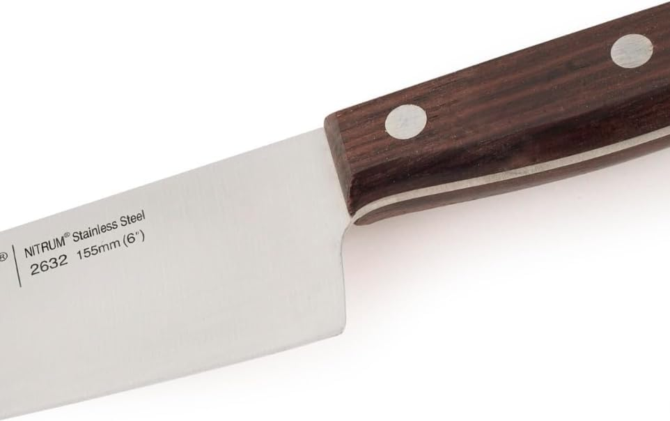 - 🪵 Triple-Riveted Natural Wood Handle The ergonomic wooden handle offers a warm, comfortable grip with classic styling. Secured with three durable rivets, it provides strength, stability, and a rustic feel that adds elegance to your kitchen. Each handle features unique wood grain for a naturally beautiful finish.