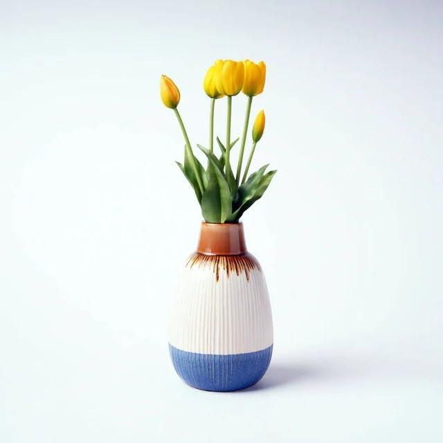 B&S Ceramic Flower Vase – Elegant Beige & Blue Gradient Decorative Pot – Eco-Friendly Tabletop Accent for Home, Office & Living Room – Stylish Modern Ceramic Vase Decor
