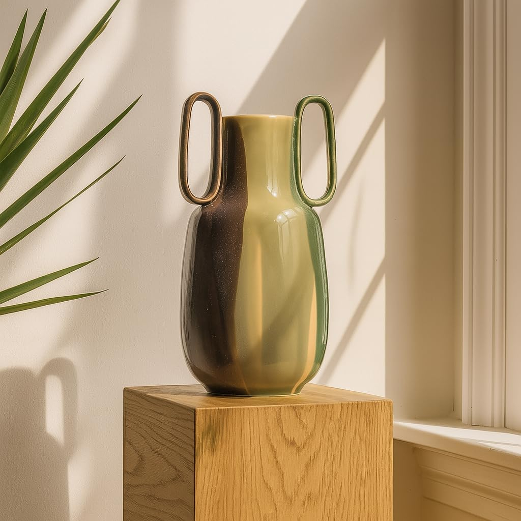 - 🎨 Artisan Drip Glaze: Each vase boasts a distinctive two-tone finish and a handcrafted drip glaze, making every piece uniquely artistic and visually captivating. No two are identical.