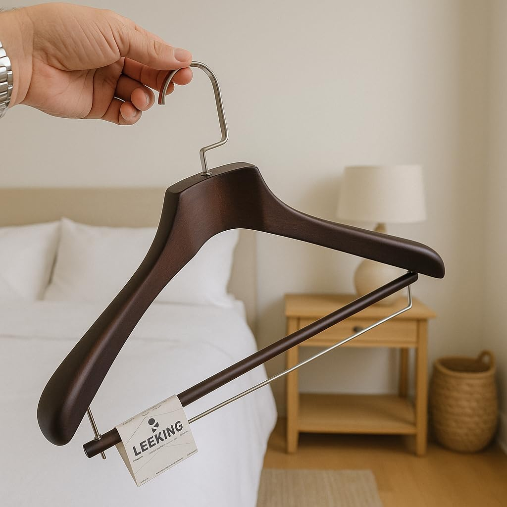 The hanger features a polished walnut color that adds warmth and sophistication to any closet. Ideal for both men’s and women’s wardrobes, it complements luxury interiors and upscale boutiques alike. ✨