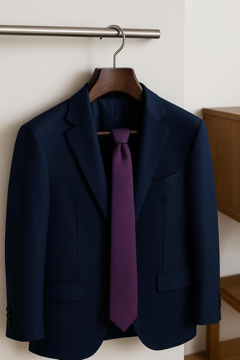 - 👖 Built-In Square Rod for Trousers: The sturdy square wooden bar is ideal for hanging pants, trousers, or suit sets. It keeps your outfits together, organized, and wrinkle-free—perfect for formal wear or travel preparation.