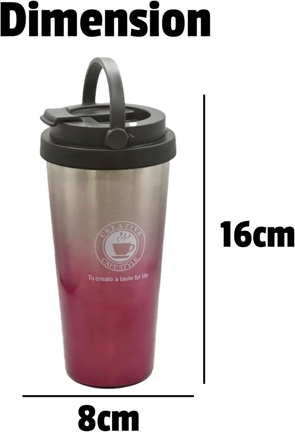 “PREMIUM 304 STAINLESS STEEL CONSTRUCTION: Made from high-quality stainless steel, this vacuum flask ensures rust resistance, durability, and long-lasting use. Its sleek design and sturdy build make it perfect for daily use, travel, or as a reliable companion for outdoor adventures. DOUBLE-WALL INSULATION FOR TEMPERATURE RETENTION: This hot and cold water bottle features advanced double-wall vacuum insulation to keep drinks hot for 6 hours and cold for 12 hours. Perfect for coffee, tea, or chilled beverages, it’s ideal for staying refreshed and energized throughout the day. INNOVATIVE 360° LEAK-PROOF DESIGN: This flask bottle features a 360° anti-leakage lid, ensuring no accidental spills. It comes with a plastic lid, adding a versatile touch for camping, traveling, or everyday use. BPA-FREE AND ECO-FRIENDLY MATERIALS: Safe for daily use, this insulated water bottle is made with BPA-free materials, promoting an eco-conscious lifestyle. Replace disposable plastics and enjoy a sustainable solution for your hydration needs without compromising on style or performance. ERGONOMIC DESIGN FOR TRAVEL AND OUTDOORS: Lightweight and portable, this water flask features an ergonomic grip and compact size, making it easy to carry for work, outdoor activities, or gym sessions. Its 500ML capacity ensures you stay hydrated wherever life takes you, without added bulk.”