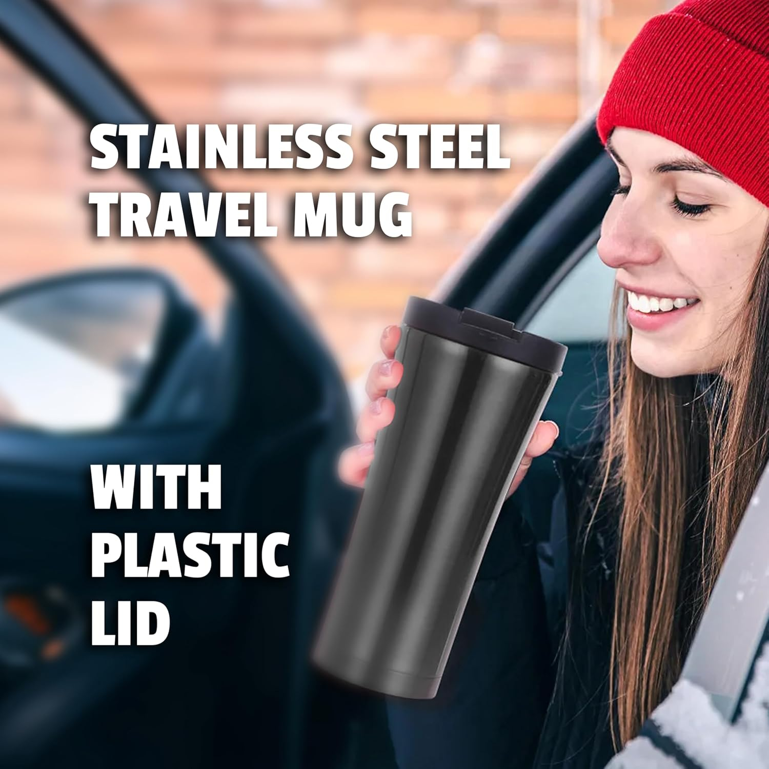 B&S Stainless Steel Tumbler Flask Bottle with Plastic Lid | Vacuum Insulated Beverage Bottle | Leak-Proof Insulated Double Wall | 12 Hours Hot and Cold Water Bottle | Vacuum Flask 500ML (Black)