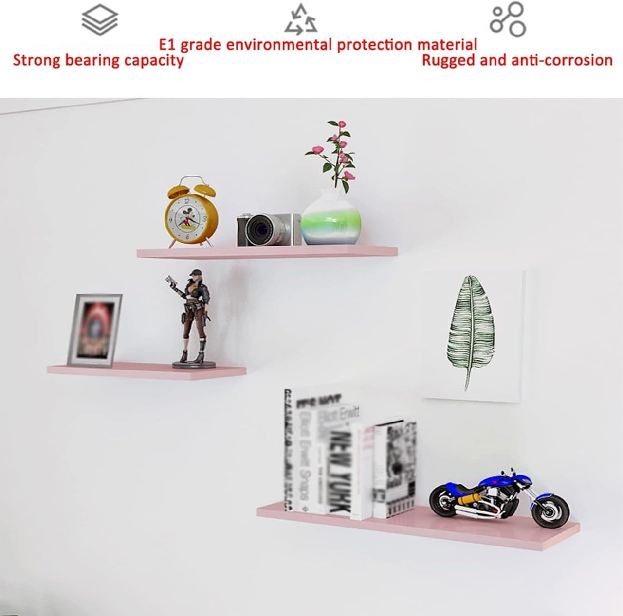 - 🔹 💪 Durable MDF Construction Each shelf is crafted from high-quality Medium-Density Fiberboard (MDF), 1.8 cm thick, ensuring long-lasting strength and stability for everyday use. Supports up to 5kg per shelf (depending on wall type).