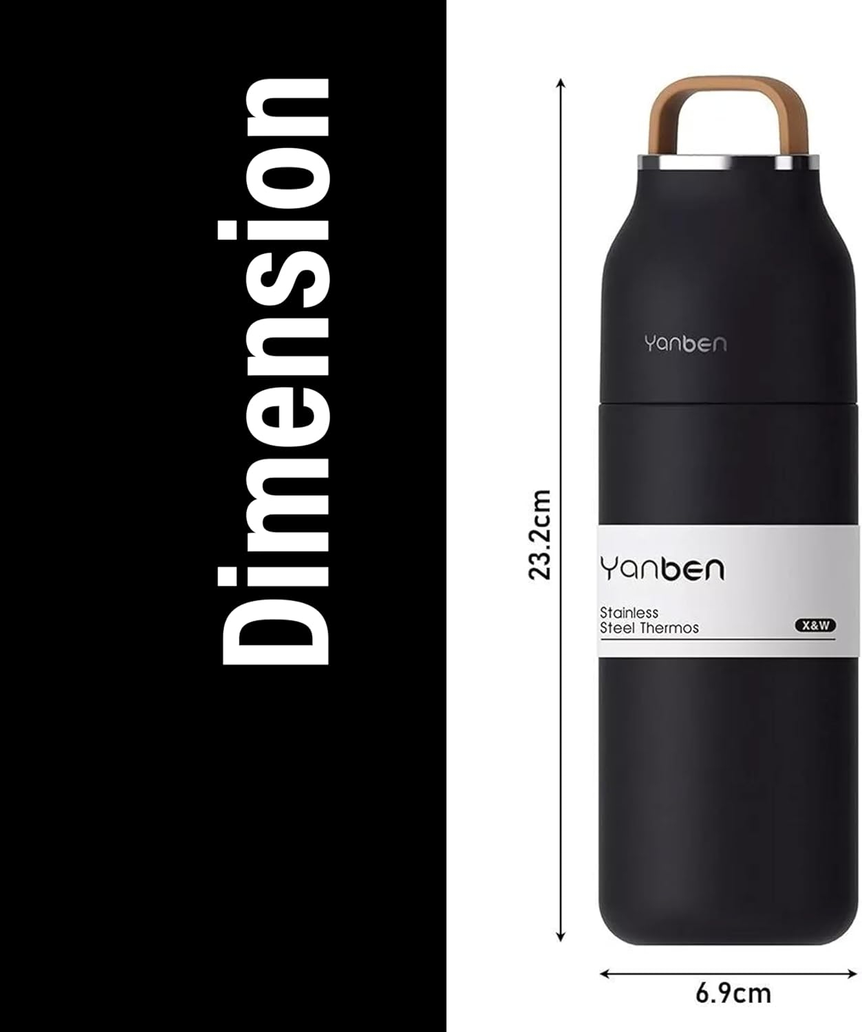 B&S Yenban Insulated Water Bottle with Leak-Proof Lid Cup | Vacuum Flask Bottle | 12 Hours Hot and Cold Water Bottle | 304 Stainless Steel Tumbler with Silicone Handle | Water Flask 350ML, Black