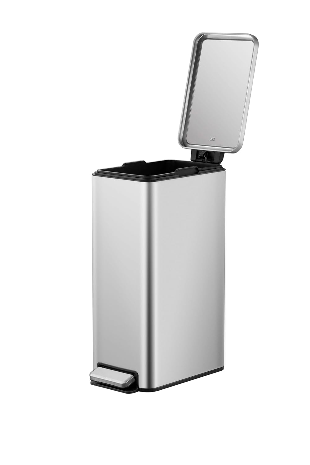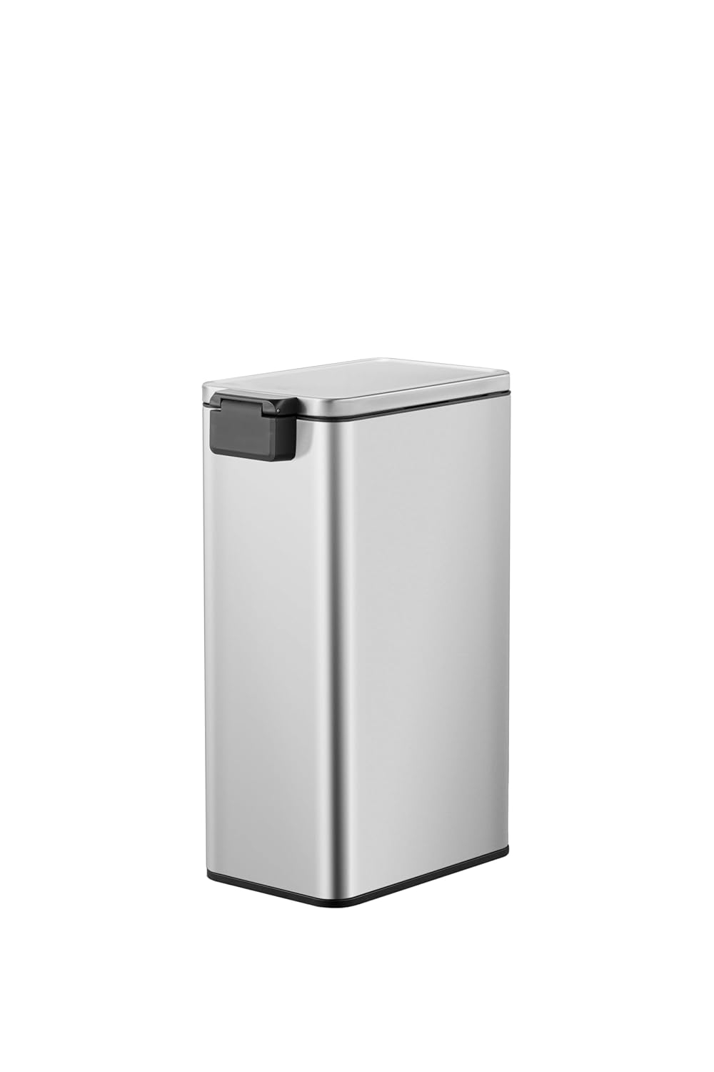 EK9380MT-6L EKO BRAND 6L STELLA SLIM STEP BIN – Fits completely against the wall -Soft close&Stay open lid-Fingerprint resistant-Durable cantilever foot-operated pedal mechanism-Plastic bag stabilize