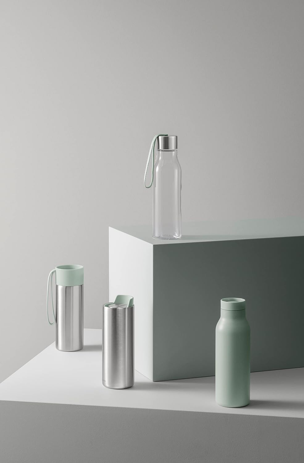 The Urban To Go Cup can be easily opened and closed with one hand on the go thanks to the functional click function in the lid. In the double-walled cup with vacuum effect coffee and other beverages remain hot or cold for a long time.. •Â 90% recycled stainless steel •Â Double-walled insulated cup with vacuum •Â Steel cup is made from recycled steel •Â Functional lid with click function – easy to hold with one hand •Â Easy to clean – dishwasher safe Dimensions: Height: 19.2 cm Diameter: 7 cm Capacity: 350 ml Material: stainless steel (90% recycled), plastic Color: Sage (sage) Manufacturer article number: 567103 , Pack contains:1 Eva Solo Urban To Go Cup Recycled, Insulated Mug, Stainless Steel, Plastic, Sage, 350 ml, 567103
