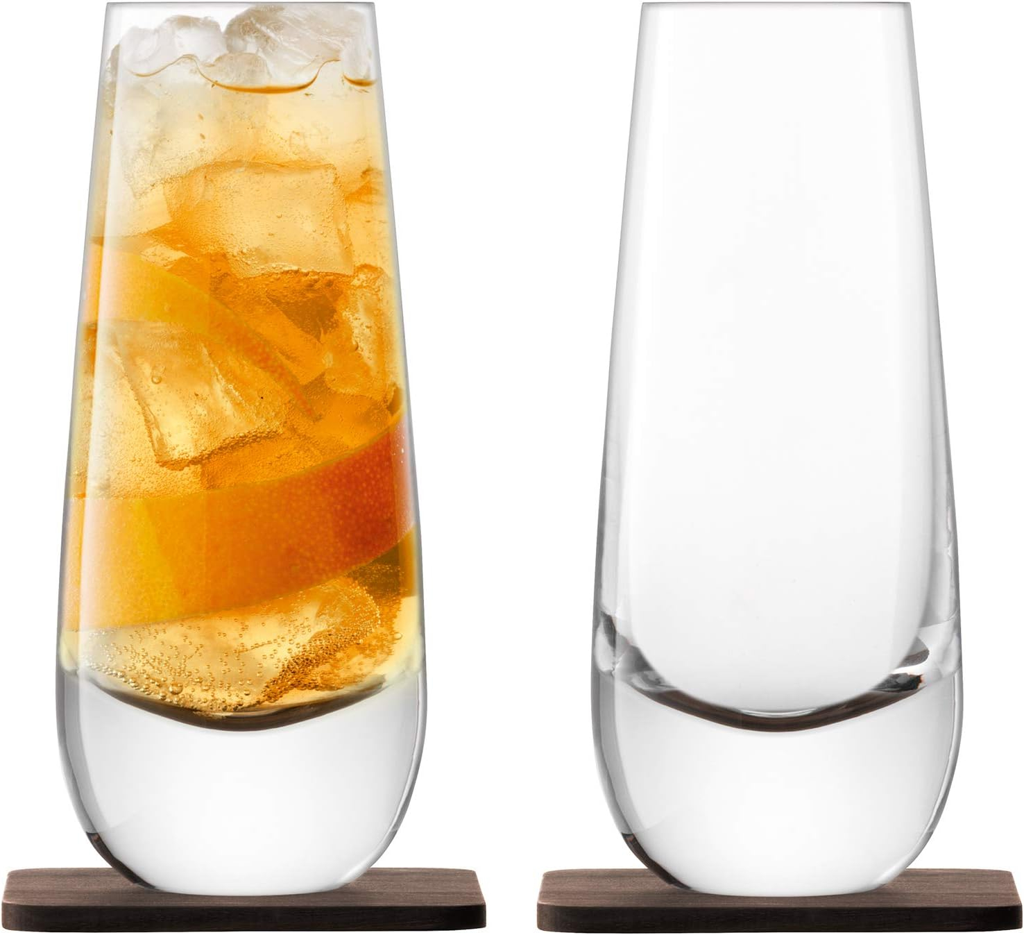 LSA International Whisky Islay Mixer Glass 11 fl oz Clr & Walnut Coaster x 2, Clear/Walnut
