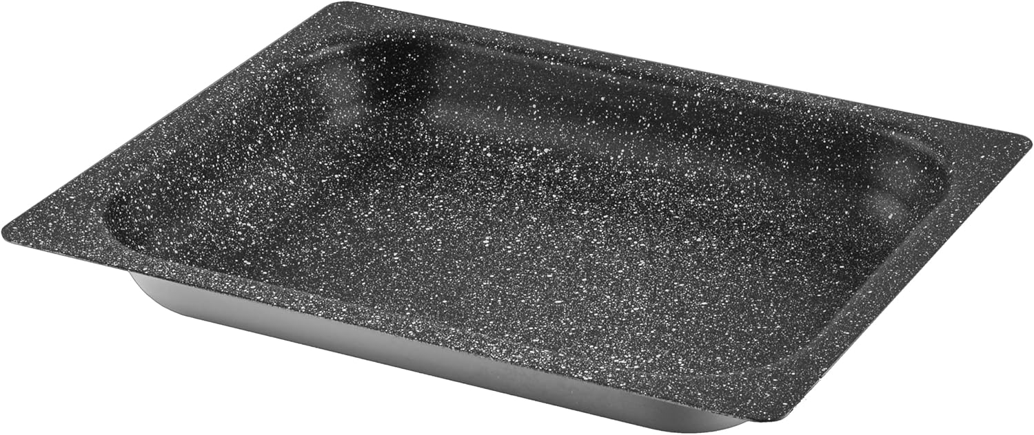 Elevate your baking experience with this sleek and durable baking pan. Crafted from high-quality materials, it boasts a sturdy stainless steel base and a thick, non-stick coating that ensures effortless food release and easy cleaning. The pan’s deep, rectangular shape provides ample space for baking cakes, breads, and other delectable treats. Its unique design, featuring gently sloped sides and a textured surface, promotes even heat distribution and superior browning. With its versatile size and robust construction, this baking pan is a must-have for any home baker or professional kitchen. Prepare to impress your loved ones or guests with mouthwatering baked goods every time.Black Granite Baking Pan with Stainless Steel Base, Baking Pan with Stainless Steel Base,OP120M/2620G BAKING PANS”GASTRONORM”1/2 26X32XH20 H.S